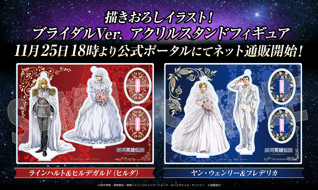 新作2種!「描きおろしイラスト ブライダルVer.アクリルスタンドフィギュア」【ラインハルト&ヒルデガルド(ヒルダ)】【ヤン・ウェンリー&フレデリカ】