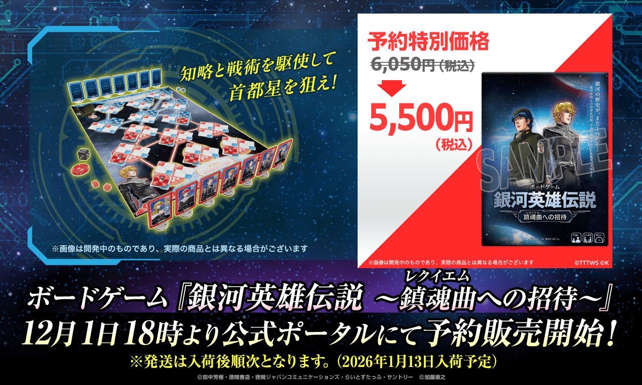公式ポータルネット通販にて、新商品『ボードゲーム「銀河英雄伝説 ~鎮魂曲への招待~」』12/1(月)18時より 予約販売開始いたしました!